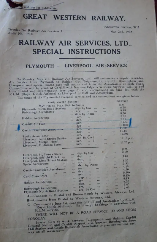 Railway Air Services - Circular 1