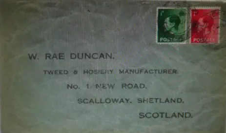 Mail was only flown on one flight as Aberdeen Airways. This was the Emergency flight on the 29th January 1937. By the time they got the mail contract the name had been changed to Allied Airways. Mail had lain stormbound for a fortnight and Aberdeen Airways were contracted to deliver the mail by air to Lerwick and the mail from Lerwick to Aberdeen. 989lb of mail was flown from Aberdeen to Thurso in a De Havilland Dragon piloted by James Gordon Hay. At Thurso, the mail was transferred to another Dragon flown by H. Vallance. The plane arrived at Sumburgh at 4.30 pm. After the mail had been taken off the plane the plane was loaded with a light consignment of mail from Shetland for points South of Kirkwall. Vallance flew to Kirkwall where the mail was transferred to the steamer “St Magnus”. Redgrove says about the covers from the Shetlands “So far as the covers flown from Shetland are concerned, it is doubtful any were preserved”. Although covers sent to the Shetlands are fairly common Redgrove may be correct as I have no covers to show from the Shetlands.