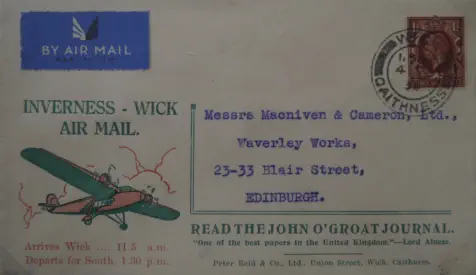 Highland Airways. Company Envelopes extension to Wick.